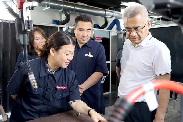 隨后,賈堤一行走進(jìn)工業(yè)機(jī)器人實(shí)訓(xùn)基地,深入了解了集團(tuán)技能人才培養(yǎng)與焊材智能化生產(chǎn)線建設(shè)情況。賈堤指出,金橋集團(tuán)要加大自主研發(fā)投入,夯實(shí)技術(shù)底蘊(yùn),提升品牌價(jià)值,拓寬人才引進(jìn)渠道,進(jìn)一步加大吸納人才的力度,促進(jìn)高質(zhì)量充分就業(yè)。