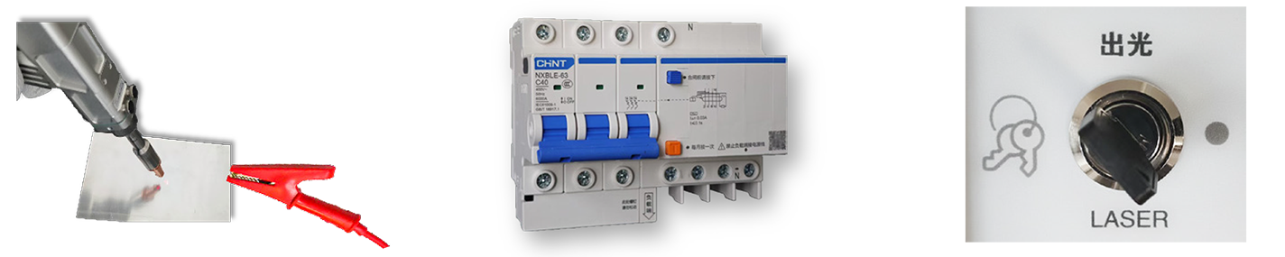 出光口接觸夾有安全地夾的工件時才符合出光條件,防止激光對工件以外的物體照射。符合T/CWAN 0064-2022中13.2要求。漏電保護(hù):