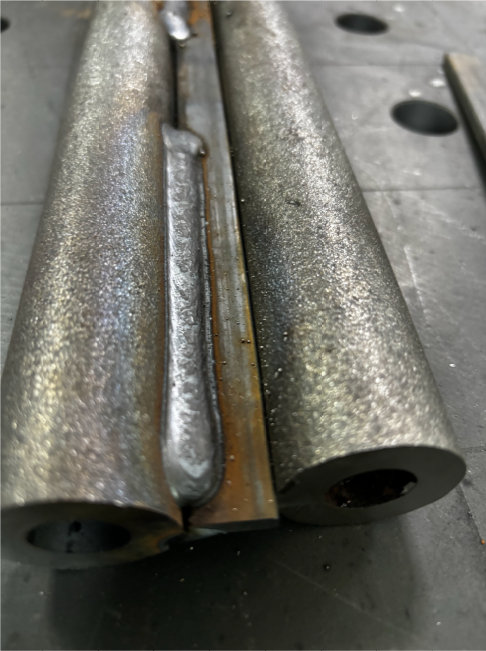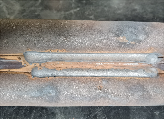 在焊前預(yù)熱100°C,焊后回火760°C的工況要求下,滿足余高≤3 mm,焊后無熱裂紋,焊接收弧工作無弧坑的焊接工藝需求。